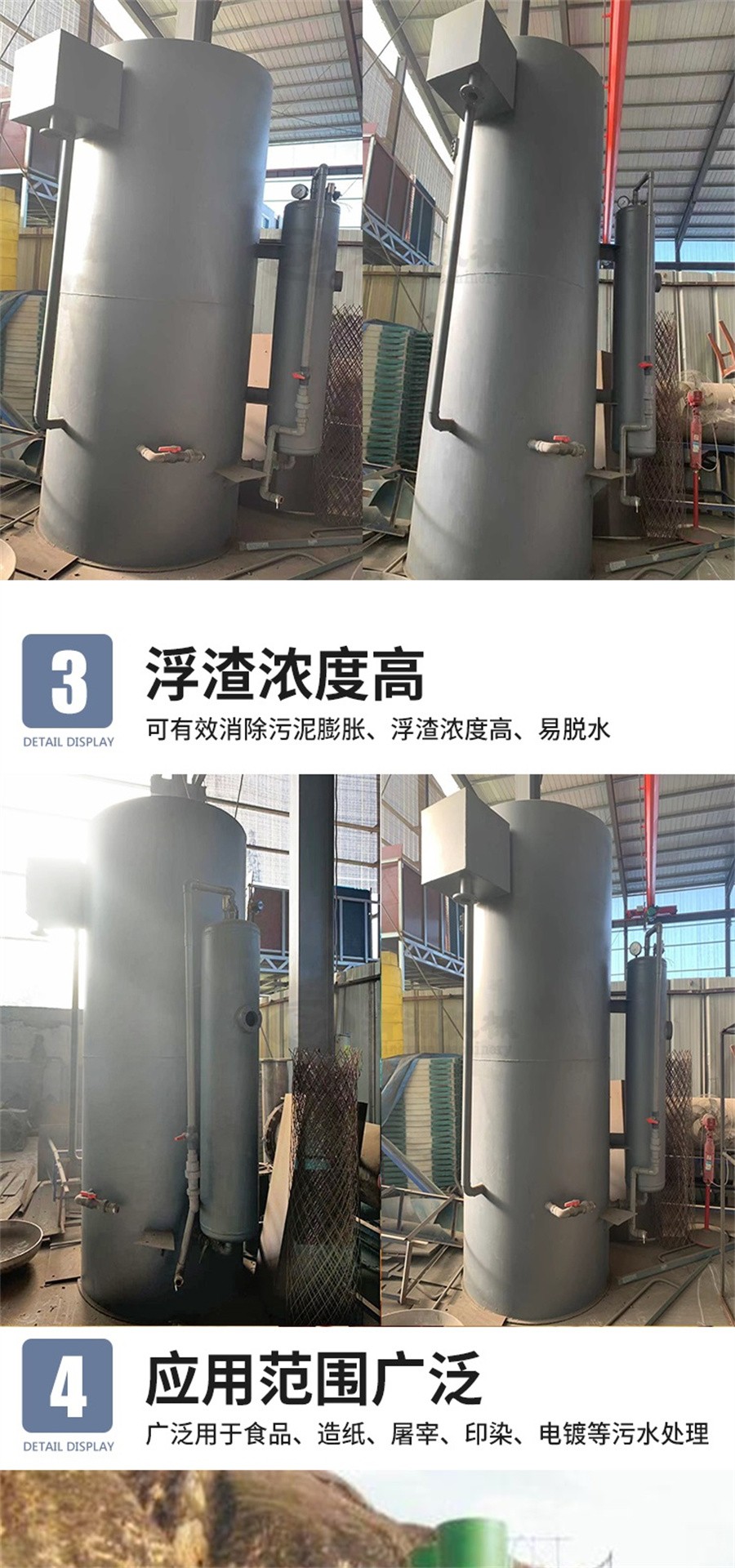 概述:SQF系列超級溶氣氣浮機為鋼制結構,工作原理是:空氣通過泵送入壓力容氣罐,在0.5Mpa壓力下被強制溶解在水中,在突然釋放的情況下,溶解在水中的空氣析出,形成大量至密的微氣泡群,在緩慢上升過程中吸附懸浮物,使懸浮物密度下降而上浮,達到去除SS和CODcr的目的。適應于石油、化工、造紙、皮革、印染、食品、淀粉等場合用來去除油或懸浮物。超級溶氣氣浮機特點是:占地面積小,出水達標排放,處理量大,處理水質好。