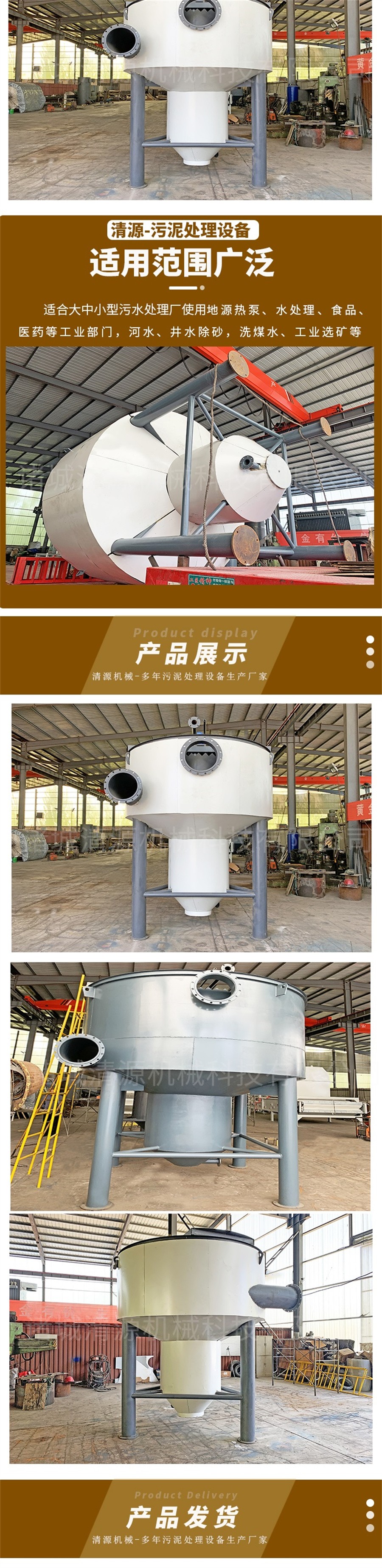 QYYXLC型號鐘式旋流除砂機是一種新引進的國外技術,用于給排水工程中去除直徑0.2mm以上的大部分砂粒,去除率98%以上。