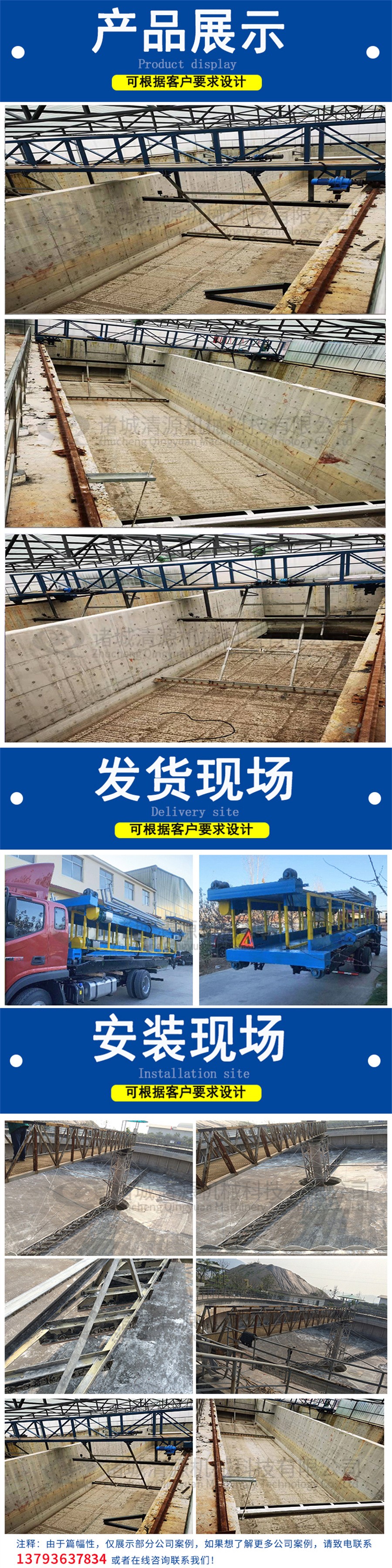我公司除生產(chǎn)行車式提耙刮泥機(jī)外還生產(chǎn)半橋式周邊傳動(dòng)刮泥機(jī),中心傳動(dòng)刮泥機(jī),污泥濃縮機(jī),污泥脫水一體化等其他污泥濃縮設(shè)備。