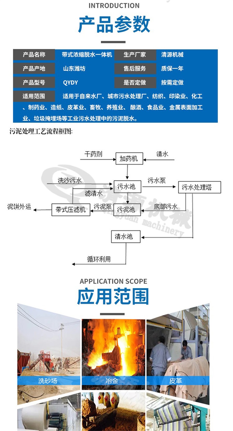 帶式濃縮脫水一體機適用于自來水廠、城市污水處理廠、紡織、印染業(yè)、化工、制藥業(yè)、造紙、皮革業(yè)、畜牧、養(yǎng)殖業(yè)、 釀酒、食品業(yè)、金屬表面加工業(yè)、垃圾掩埋場等工業(yè)污水處理中的污泥脫水。