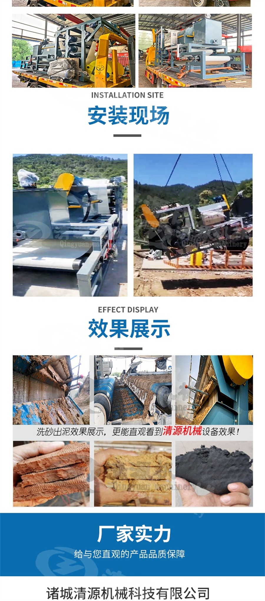 帶式濃縮脫水一體機在QYYL型帶式壓濾機的基礎(chǔ)上,吸取了國外新機械濃縮,壓濾脫水的原理和技術(shù),開發(fā)了新型帶式濃縮壓榨過濾機,組成全新一代濃縮——壓濾脫水一體機。污泥經(jīng)投加凝聚劑后進行充分混合反應(yīng)流入濃縮段的進料分配器,將污泥均布到傾斜式的濃縮段上,并在泥耙的雙向?qū)韬椭亓ψ饔孟拢勰嚯S著濾布的移動,迅速脫去污泥的游離水。重力脫水后濃縮污泥反轉(zhuǎn)機構(gòu)將污泥輸送至帶式壓濾機的重力脫水段進一步脫水。然后喂入“S”形壓榨段,在“S”形壓榨段中,污泥被夾在上、下兩層濾布中間,經(jīng)若干個不同直徑輥筒反復(fù)壓榨,促使泥餅再一次脫水,后通過刮后將泥餅刮落,而上下網(wǎng)帶在運行過程中不斷的地被自動清洗。
